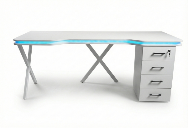 XMAX Zyra 180x80cm Işıklı Çekmeceli Beyaz MDF Çalışma Yada Oyun Masası