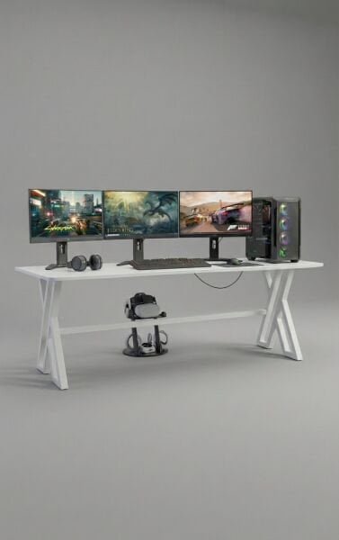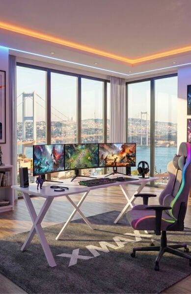 XMAX NEXAR Oyuncu Masası – Beyaz MDF Bilgisayar ve Gaming Masa